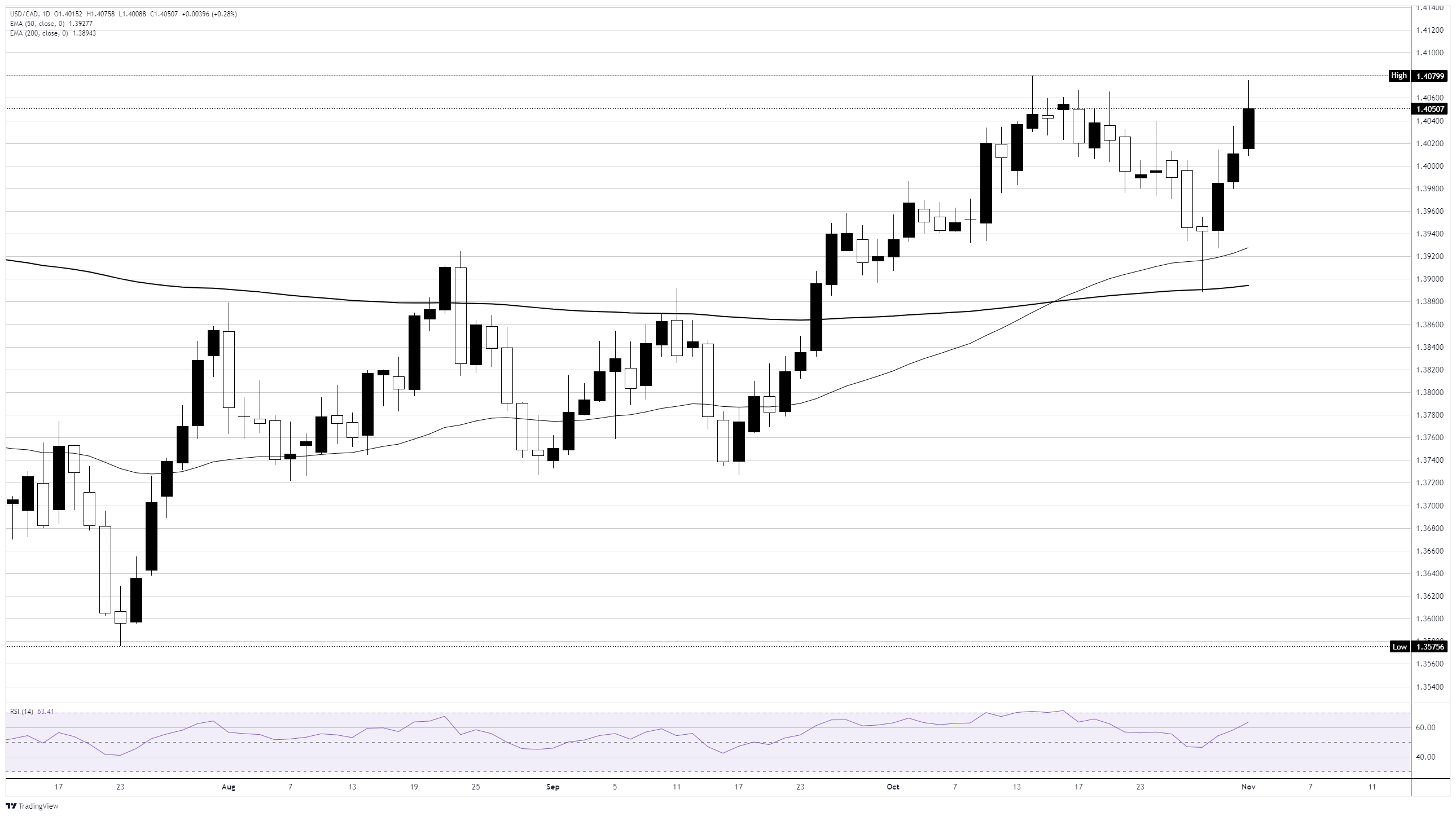 - USD/CAD has risen back into the 1.4050 zone, and is poised to take a fresh run at seven-month highs as the Loonie continues to slump against the Greenback.